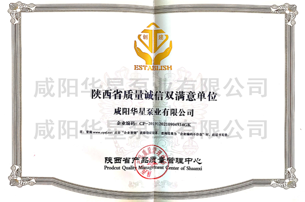 咸陽(yáng)華星泵業(yè)有限公司專利證書